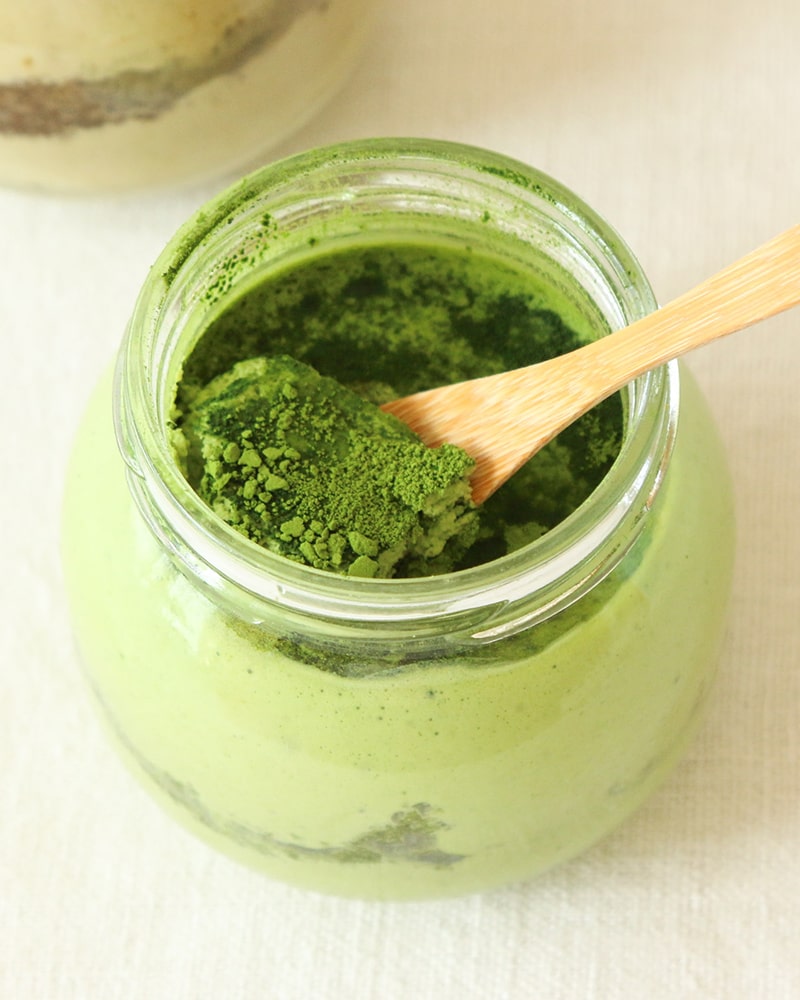 上に美しい緑色の抹茶パウダーがたっぷり♡見た目も鮮やかな宇治色のスイーツです。